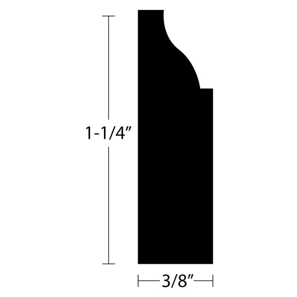 This molding is a 3/8" x 1-1/4" Poplar Door Stop.