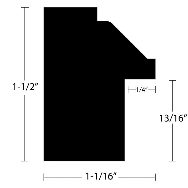 This molding is a 1-1/16" x 1-1/2" Primed Finger Joint Backband.