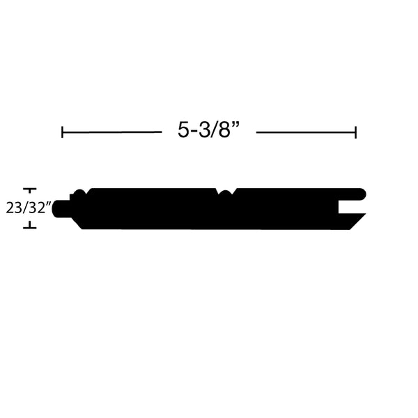 This molding is a 11/16" x 5-3/8" Knotty Pine Wood Siding.