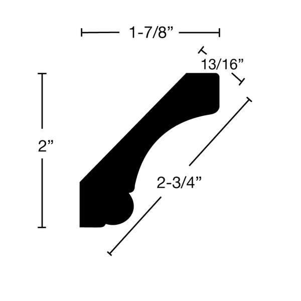 This molding is a 13/16" x 2-3/4" maple Crown. Crown molding is most often used as a decorative accent along the upper perimeter of a room where the wall meets the ceiling. It can also be used to accent the top of pilasters, cabinets, mantles or shelves and in combination with other moldings to make a bolder look. It is extensively used as an apron, below window sills and stair treads, and is used to decorate the boxes in coffered ceilings.